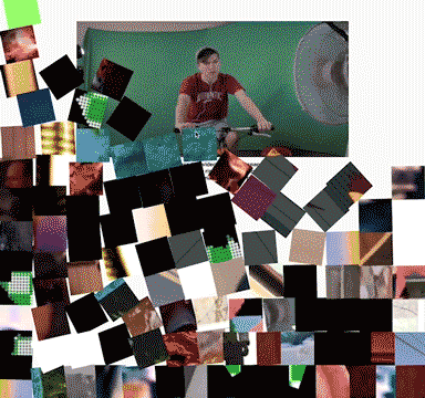 This interactive prototype is a concept for a video player in which content you watch seems to physical break into pieces and fall to the bottom of the screen as you browse. You can also “pick up” these pieces of digital debris, and the player will navigate to the video that spawned that particle. You can drag things around, and watch your content – the more you interact with it, the bigger a mess you make.