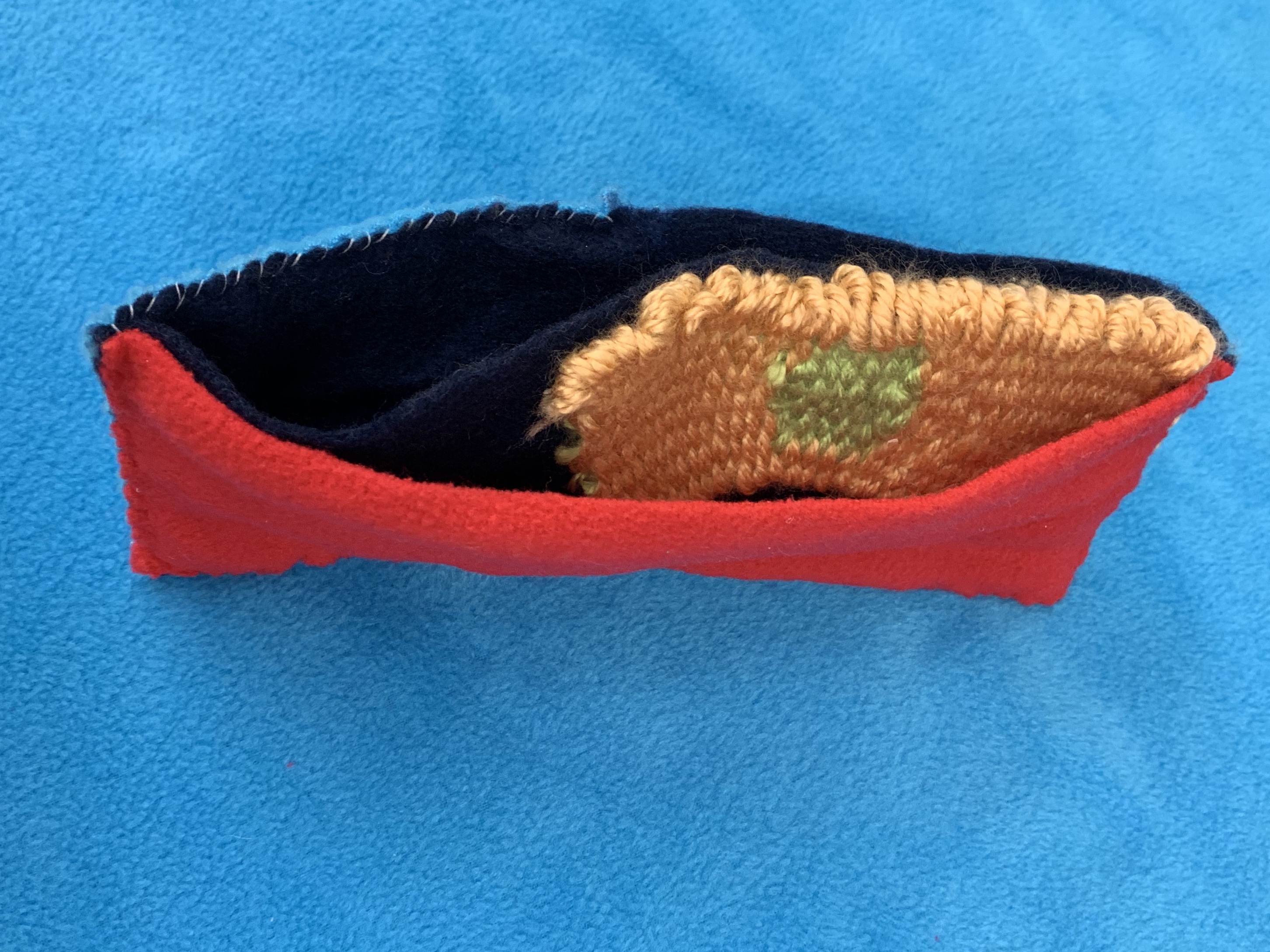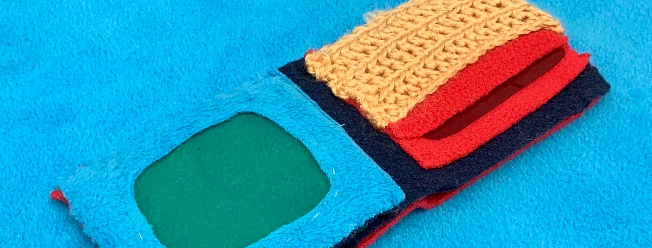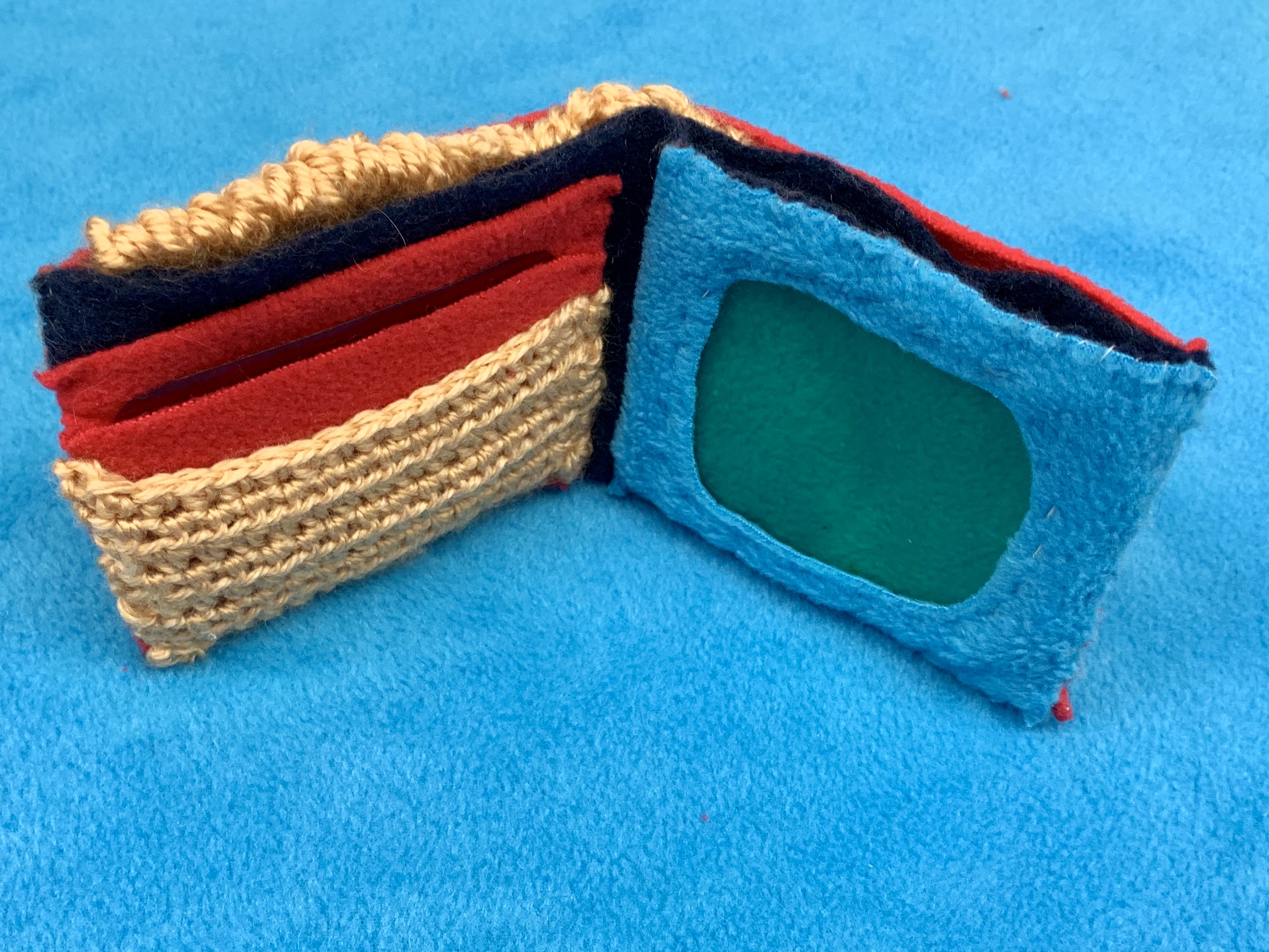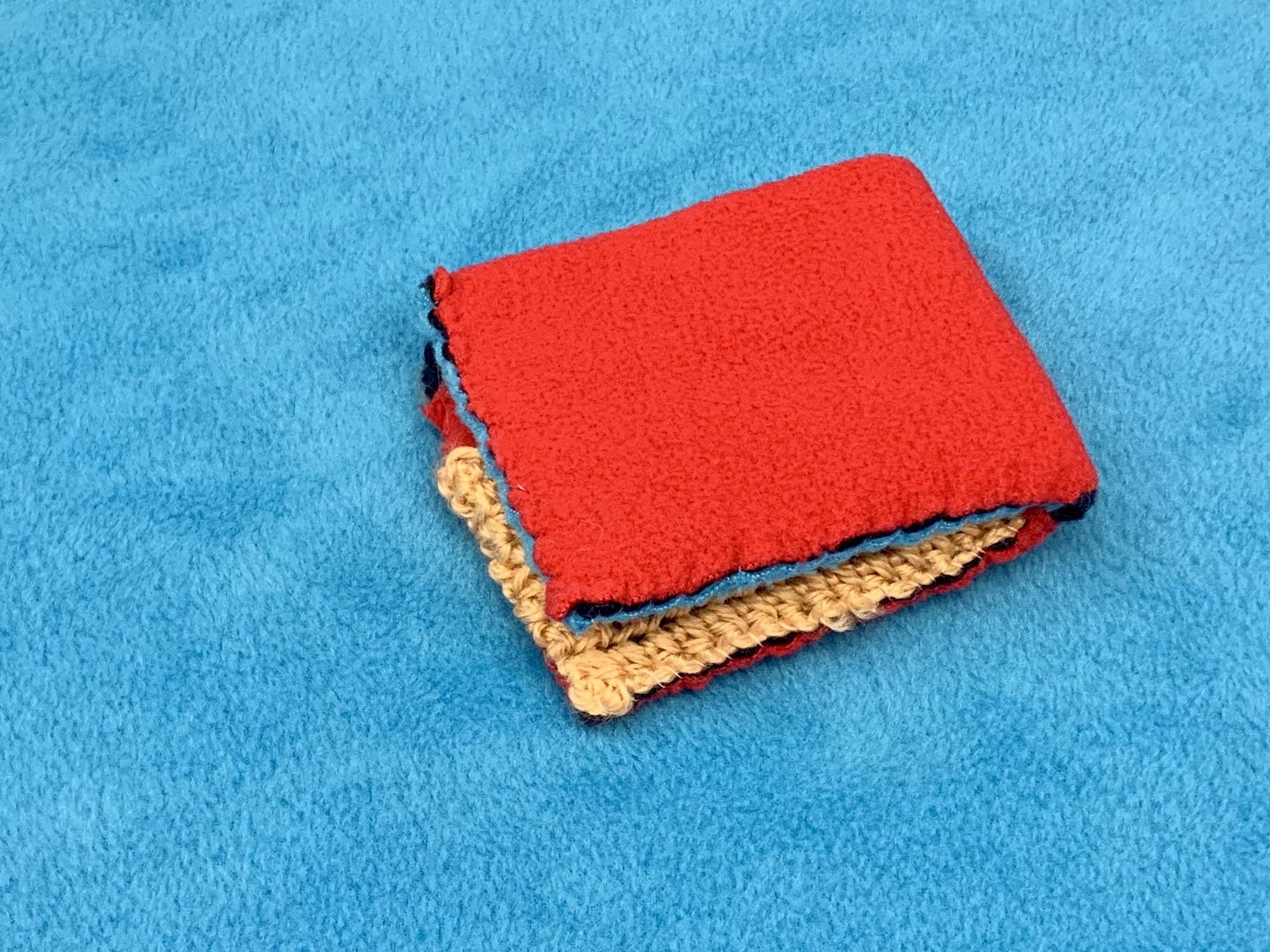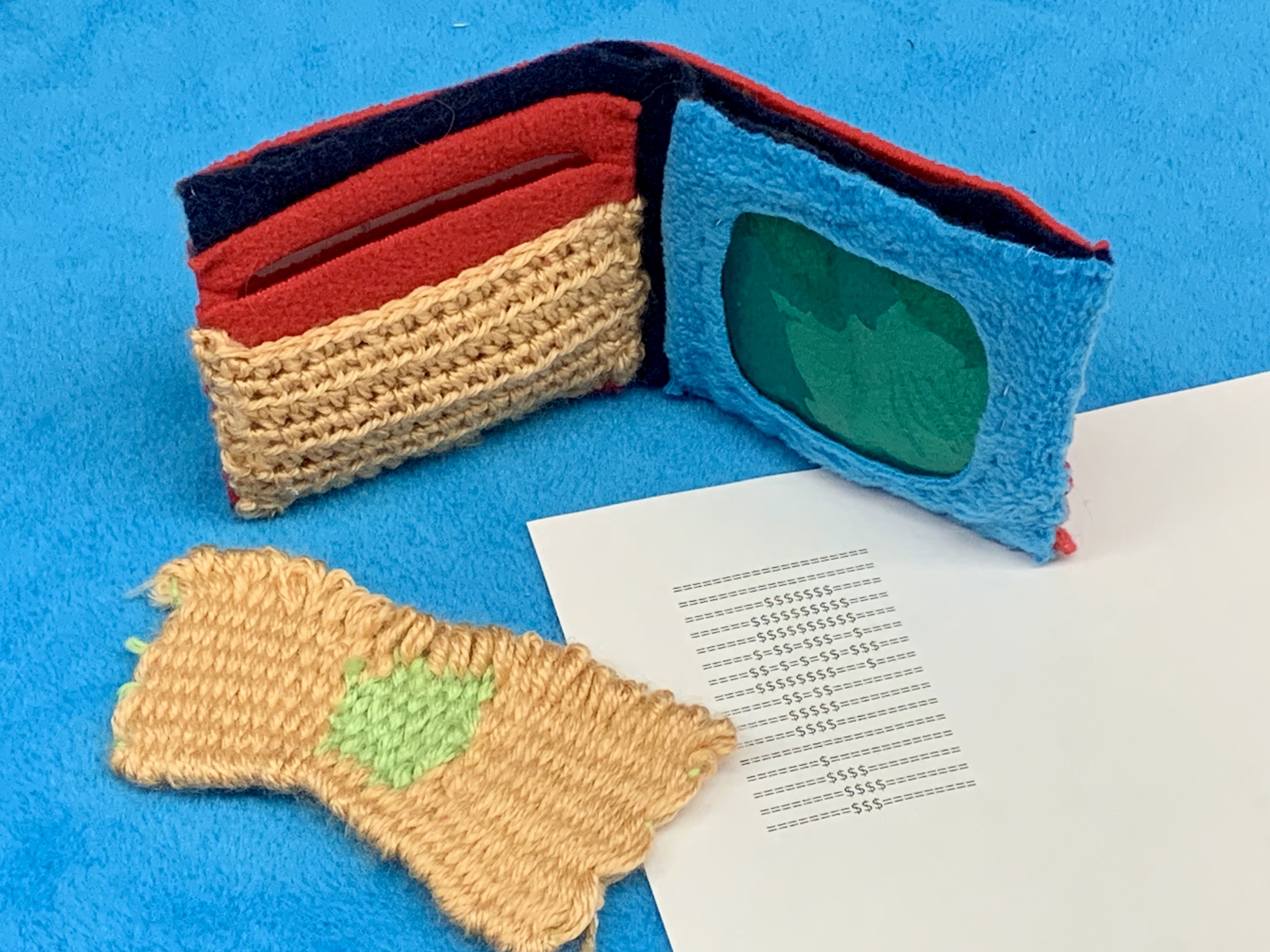 I used a few fleece blankets I got from Pittsburgh Center for Creative Reuse, and the Salvation Army in Auburn, NY to create this collage of a shirt. I used the scraps to make this wallet as an intro project for my Algorithm Textiles class early 2020. The text on the paper is programmatically generated from a photo of George Washington – the full versions are shown below.