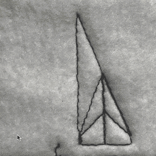 I made the reference footage using a big piece of poster board in an attempt to make my hands look smaller – more like cursors within a UI. I made sure to use a bright colors for the paper as well as my hands (hence the blue surgical gloves) so that I could key out the different elements in post-processing. This is how I isolated my hands to feed into the meandering line algorithm. The marks you see on the paper are pieces of tape that I used to try and keep everything still in the process of folding.